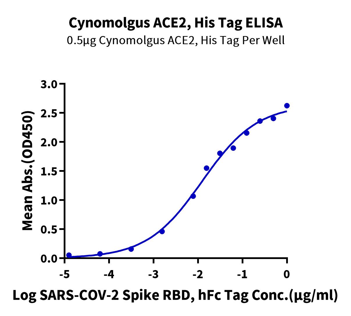 Recombinant Cynomolgus ACE2/ACEH Protein is expressed from HEK293 with His tag and Avi tag at the C-Terminus.It contains Gln18-Val739 [Accession | A0A2K5X283].