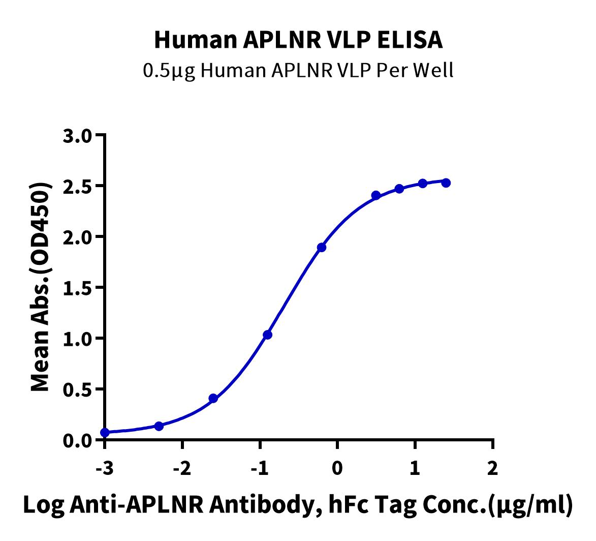 Recombinant Human APLNR VLP is expressed from HEK293.It contains Met1-Asp380 (It may have cross reaction with anti-His antibody) [Accession | P35414].