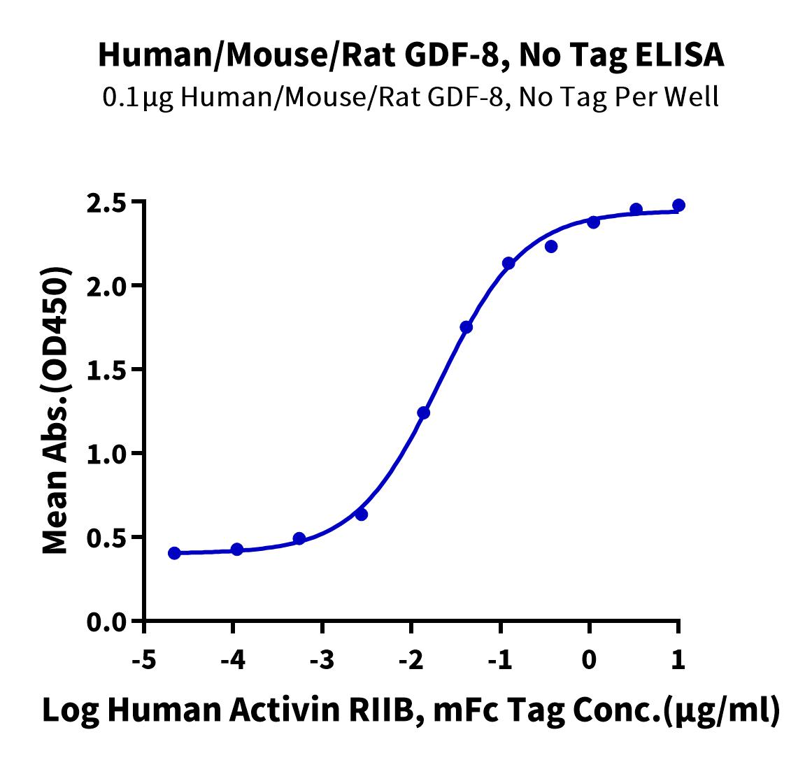Recombinant Human/Mouse/Rat GDF-8 Protein is expressed from HEK293 without tag.It contains Asp267-Ser375 (Human) / Asp268-Ser376 (Mouse/Rat) [Accession | O14793(Human) / O08689(Mouse) / O35312(Rat)].