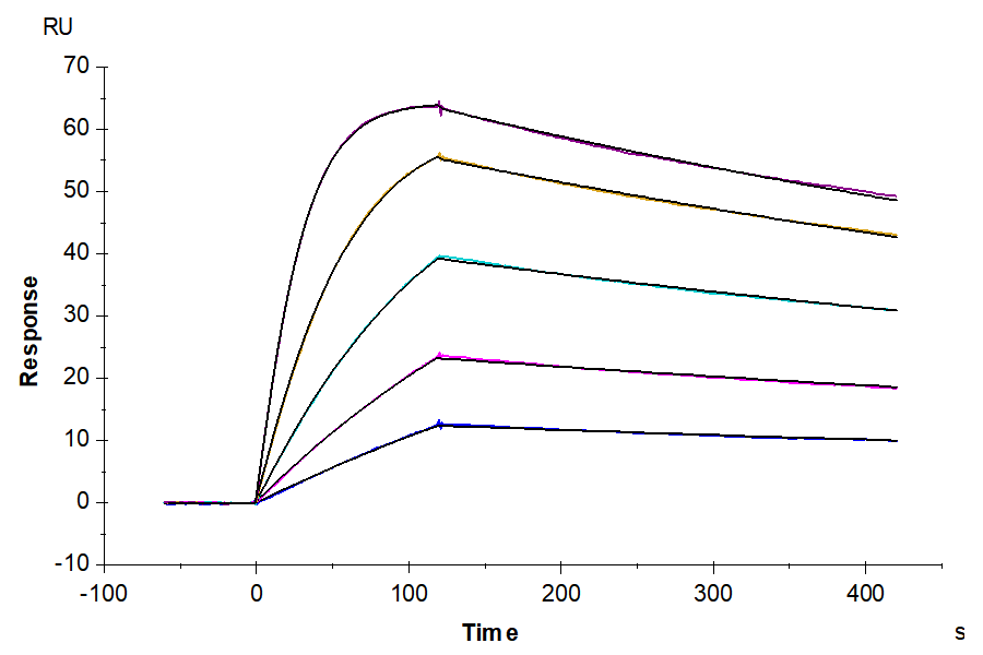 The protein has a predicted MW of 18.7 kDa. Due to glycosylation, the protein migrates to 40-60 kDa based on Bis-Tris PAGE result.