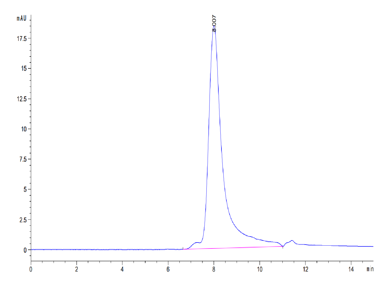 The protein has a predicted MW of 16.2 kDa. Due to glycosylation, the protein migrates to 15-20 kDa and 25-30 kDa based on Bis-Tris PAGE result.