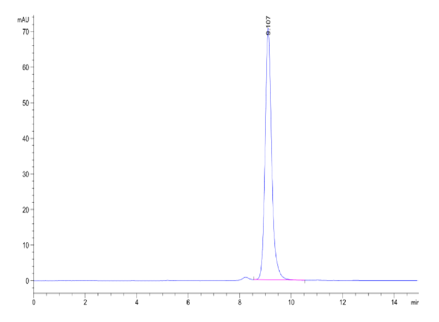 The protein has a predicted MW of 48.10 kDa. Due to glycosylation, the protein migrates to 50-60 kDa based on Bis-Tris PAGE result.