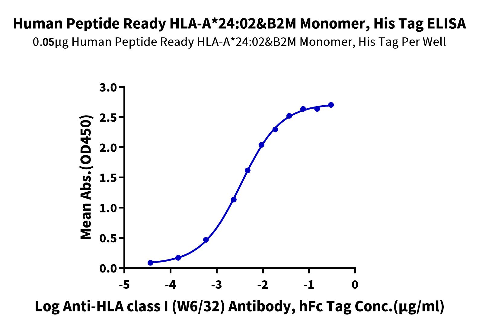 Peptide Ready HLA-A*24:02&B2M Monomer is absent from peptide, namely peptide-receptive MHC. It can be loaded with antigenic peptides matching HLA-A*24:02. Peptide ready MHC molecules comprising human HLA alleles and B2M, which can be readily tetramerized and loaded with peptides of choice in a high-throughput manner.
