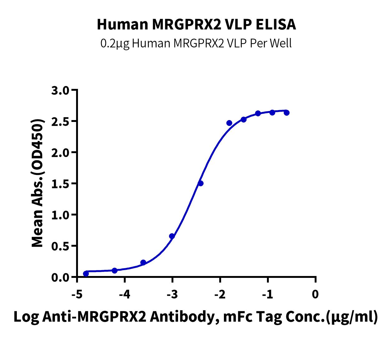 Recombinant Human MRGPRX2 VLP is expressed from HEK293.It contains Met1-Val330 (It may have cross reaction with anti-His antibody) [Accession | Q96LB1].