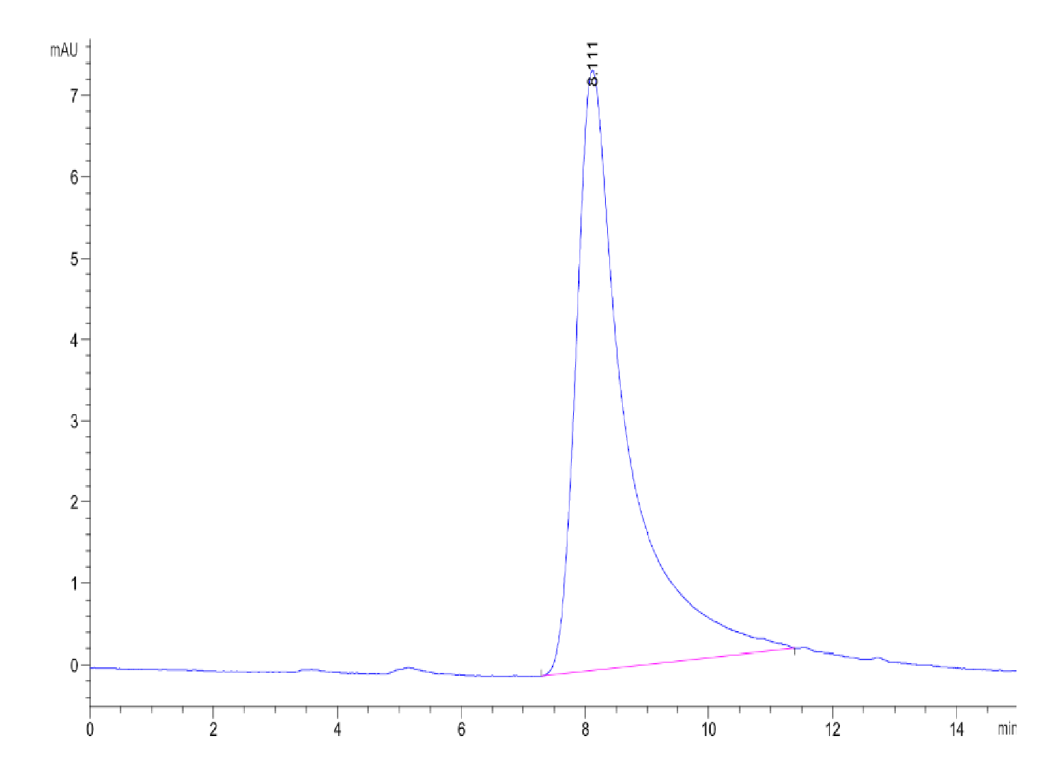 The protein has a predicted MW of 59 kDa. Due to glycosylation, the protein migrates to 68-75 kDa based on Bis-Tris PAGE result.