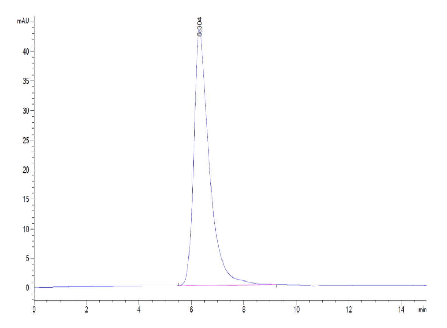 The protein has a predicted MW of 40.6 kDa. Due to glycosylation, the protein migrates to 68-82 kDa based on Bis-Tris PAGE result.