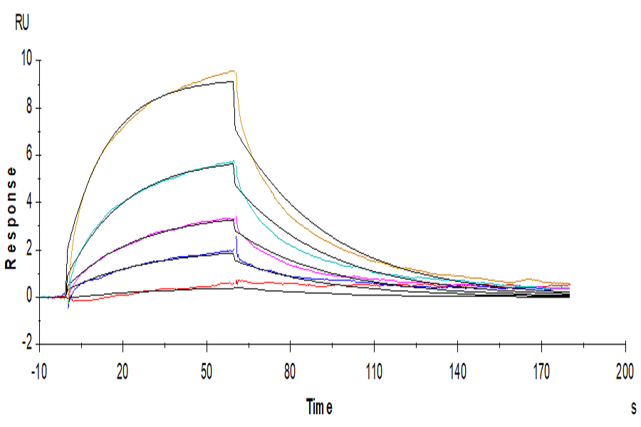 The protein has a predicted MW of 35.8 kDa. Due to glycosylation, the protein migrates to 40-50 kDa based on Bis-Tris PAGE result.
