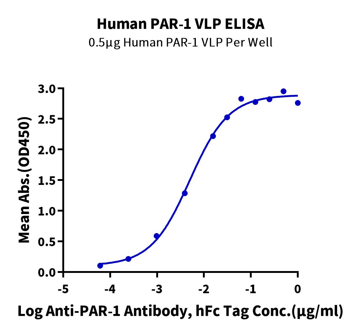 Recombinant Human Proteinase-activated receptor 1/PAR-1 VLP is expressed from HEK293.It contains Met1-Thr425 (It may have cross reaction with anti-His antibody) [Accession | P25116].