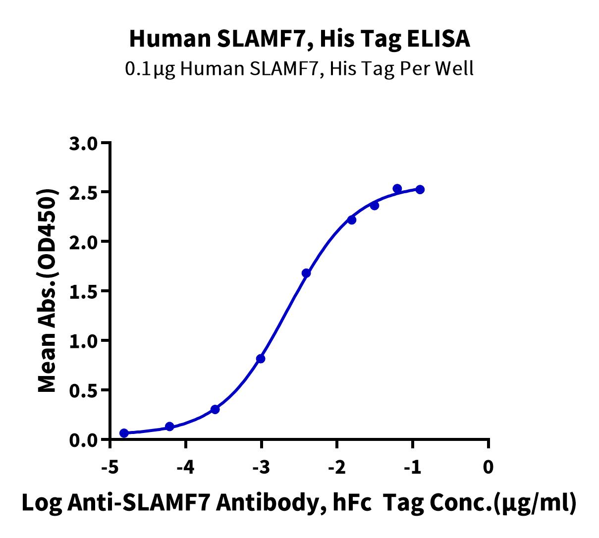 Recombinant Human SLAMF7/CRACC/CD319 Protein is expressed from HEK293 with His tag and Avi tag at the C-Terminus.It contains Ser23-Met226 [Accession | Q9NQ25-1].