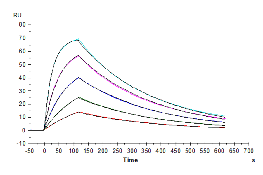 The protein has a predicted MW of 38.1 kDa. Due to glycosylation, the protein migrates to 50-65 kDa based on Bis-Tris PAGE result.