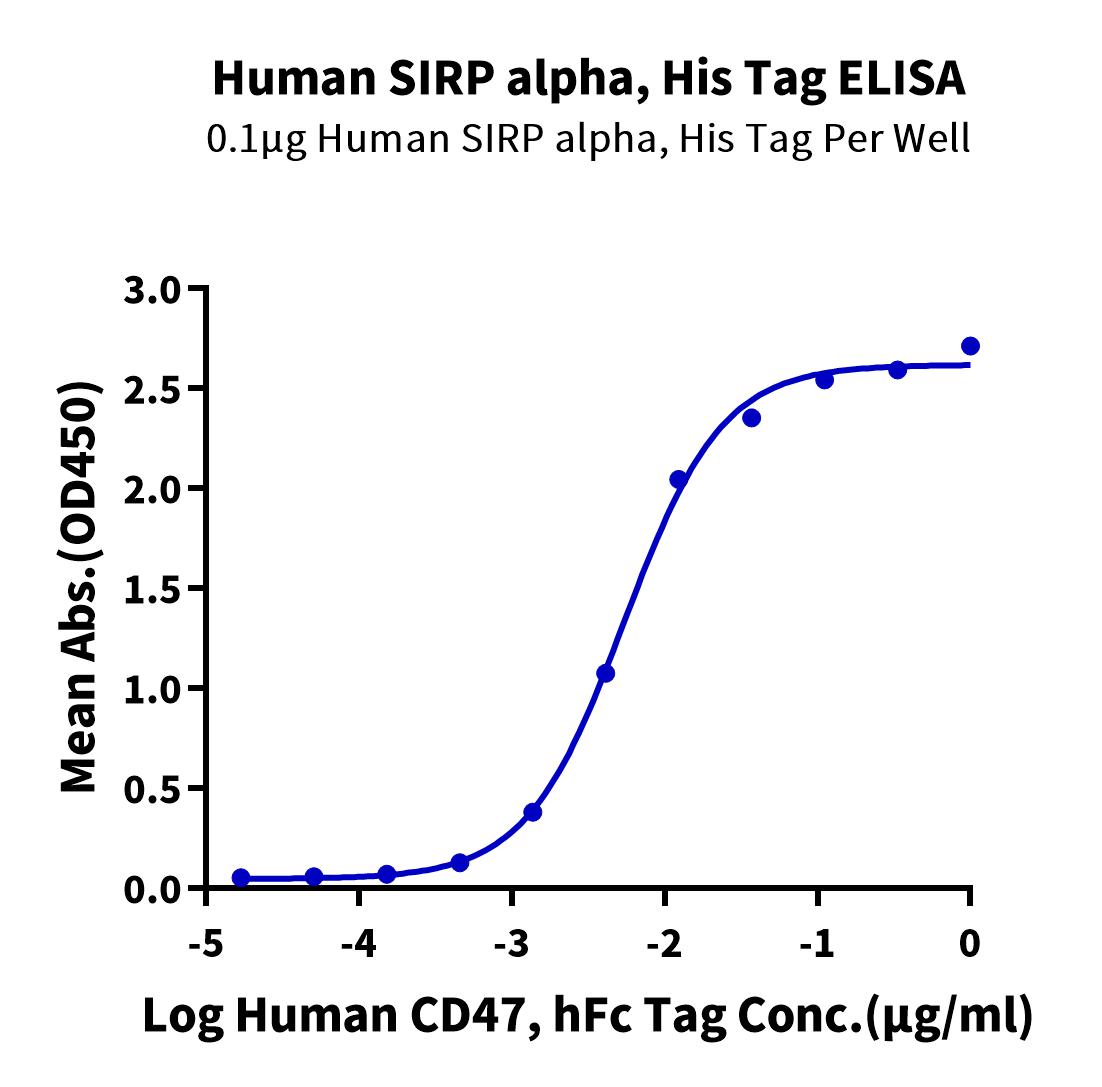Recombinant Human SIRP alpha/CD172a Protein is expressed from HEK293 with His tag at the C-Terminus.It contains Glu31-Arg370 [Accession | P78324-1].