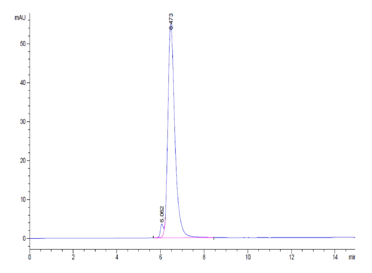 The protein has a predicted MW of 44.2 kDa. Due to glycosylation, the protein migrates to 50-68 kDa based on Bis-Tris PAGE result.